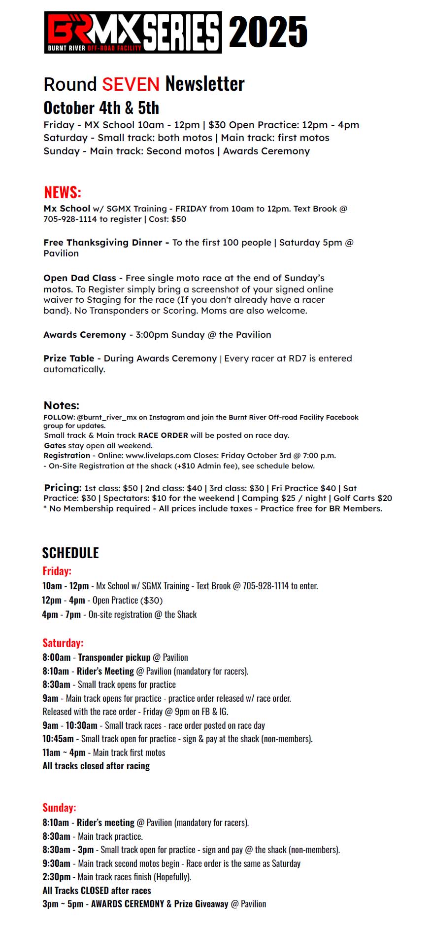Stay tuned to the Instagram @burnt_river_mx and the Burnt River Off-Road Vehicle Facility Facebook group for updates.