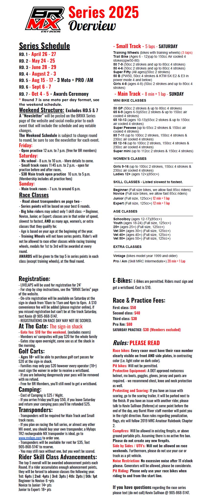 If you have questions regarding the race series please text (do not call) Kevin Sullivan @ 905-868-5147 and we will get back to you quickly